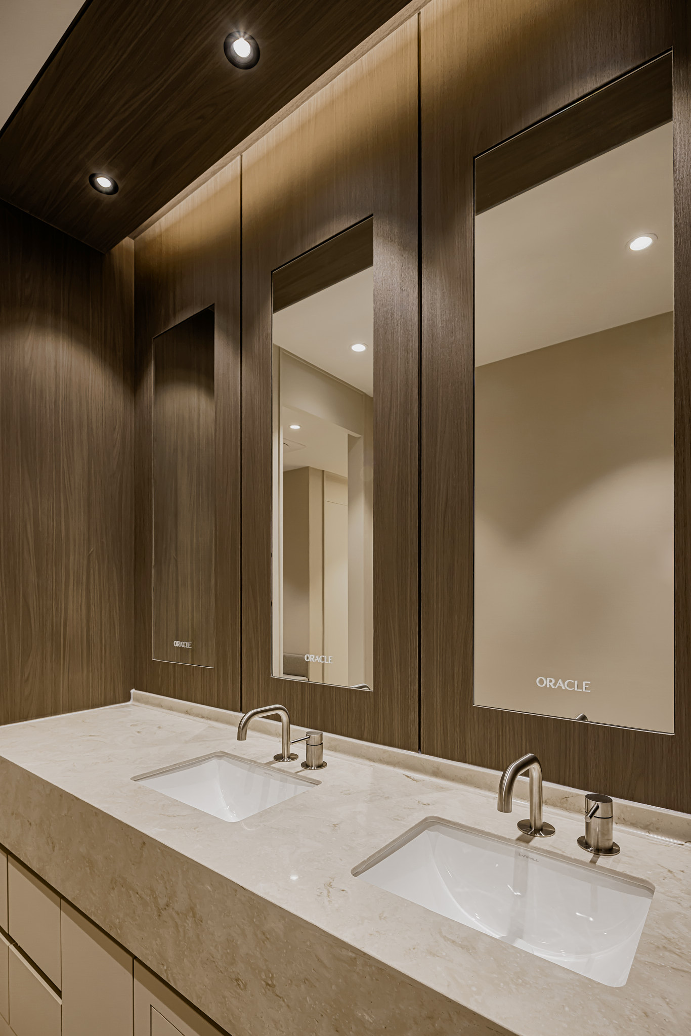 시술을 마친 환자분이 마지막으로 머무는 파우더룸은 병원에 대한 최종 인상을 결정짓습니다. 물 사용이 많은 세면대 상판은 내구성이 좋으면서도 천연석의 질감이 느껴지는 타일을 사용해 고급스러움을 극대화했고, 거울 프레임 역시 우드 톤으로 통일하여 전체적인 컨셉을 유지했습니다. 수전부터 조명 스위치 하나까지, 작은 마감재 하나도 허투루 쓰지 않고 꼼꼼하게 시공했습니다.